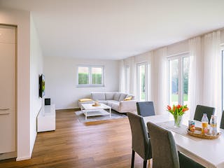 Ein Effizienzhaus 55 verbraucht im Vergleich zum Referenzhaus 100 45 % weniger Energie. Sie müssen für den Hausbau mit Mehrkosten von ~ 7,5 % rechnen, die sich aber mittelfristig auszahlen. Diese Effizienzklasse gilt heutzutage als Standard für alle neu gebauten Häuser.