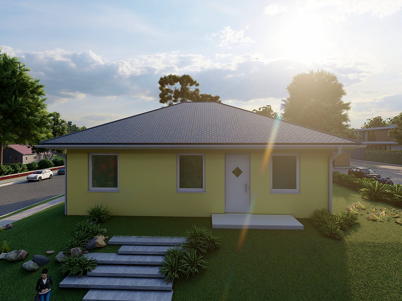 Unser Bungalow Aspe bietet den perfekten Wohntraum für die ganze Familie. Sie wollen die Raumgrößen individuell anpassen? Das ist kein Problem. Wir passen den Grundriss nach Ihren Wünschen und Vorstellungen an. Sie erstellen Ihr Haus zusammen mit uns.