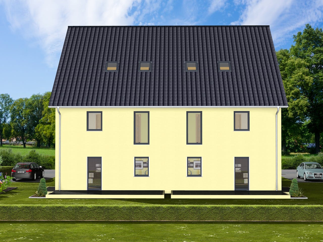 Großzügiger Wohntraum mit ausreichend Platz für mehrere Familien - unser Doppelhaus Ballandira. Der Grundriss und das Haus sind jederzeit nach Ihren Wünschen und Bedürfnissen individuell anpassbar.Sie erstellen Ihr Haus zusammen mit uns.