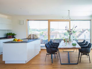 Ein Effizienzhaus 55 verbraucht im Vergleich zum Referenzhaus 100 45 % weniger Energie. Sie müssen für den Hausbau mit Mehrkosten von ~ 7,5 % rechnen, die sich aber mittelfristig auszahlen. Diese Effizienzklasse gilt heutzutage als Standard für alle neu gebauten Häuser.
