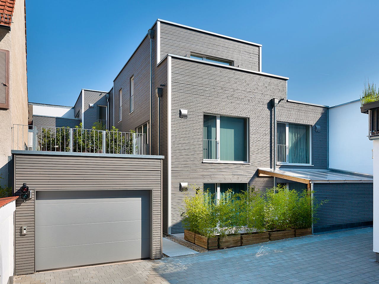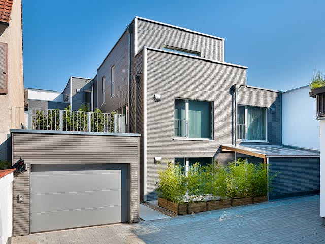 Das wohngesunde Architekten-Mehrfamilienhaus Geske ist in mehrfacher Hinsicht ein Raumwunder: Zum einen wurde hier die Herausforderung gemeistert, in einem räumlich eng begrenzten Hinterhof die maximal mögliche Ausnutzung der Wohnfläche - bei zugleich hervorragender Wohnqualität – zu erreichen. Zum anderen konnte die Vorgabe, die vorgeschriebene Anzahl der Stellplätze einzuhalten, umgesetzt werden. Baufritz realisierte ein unterkellertes Gebäude, in dem sich auf drei Geschossen verteilt fünf verschieden große Wohnungen befinden. Die Stellplatz-Problematik wurde durch die Integration einer rund 180 qm großen Tiefgarage gelöst, deren Ein- und Ausfahrt, extrem platzsparend, über einen PKW-Aufzug erfolgt. Stellplatz-Schlüssel: Eine durchaus relevante Thematik bei innerstädtischer Nachverdichtung.