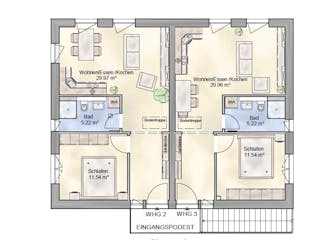 Passen Sie den Grundriss an Ihre persönlichen Bedürfnisse an und besprechen Sie Ihren individuellen Plan mit einem Bauberater des Anbieters.