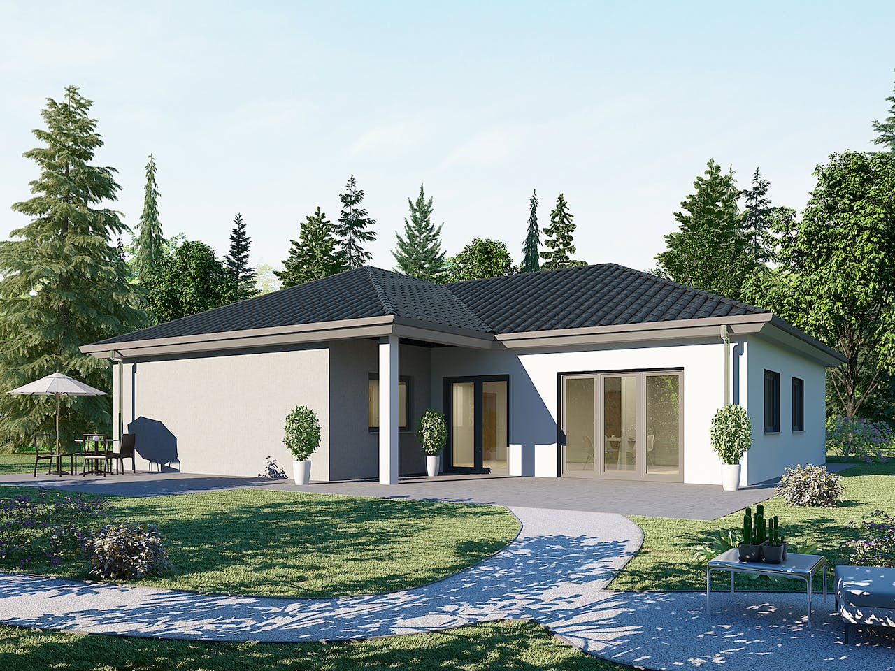 Ebenerdiges Wohnen liegt voll im Trend. Längst ist der Bungalow nicht mehr nur ein "Altersruhesitz", sondern gerade junge Bauherren wollen sicherstellen, dass man sein Haus tatsächlich ein Leben lang genießen kann. Die Massiv-Hausidee BL 135 bietet dazu mit seinen vier geräumigen Zimmern ideale Perspektiven für eine bis zu vierköpfige Familie. Dieser Bungalow erfüllt die Ansprüche aller Generationen.