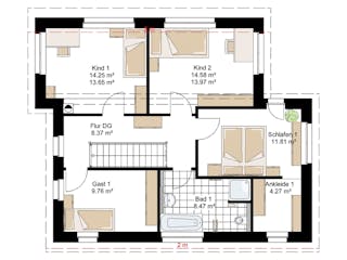 Passen Sie den Grundriss an Ihre persönlichen Bedürfnisse an und besprechen Sie Ihren individuellen Plan mit einem Bauberater des Anbieters.