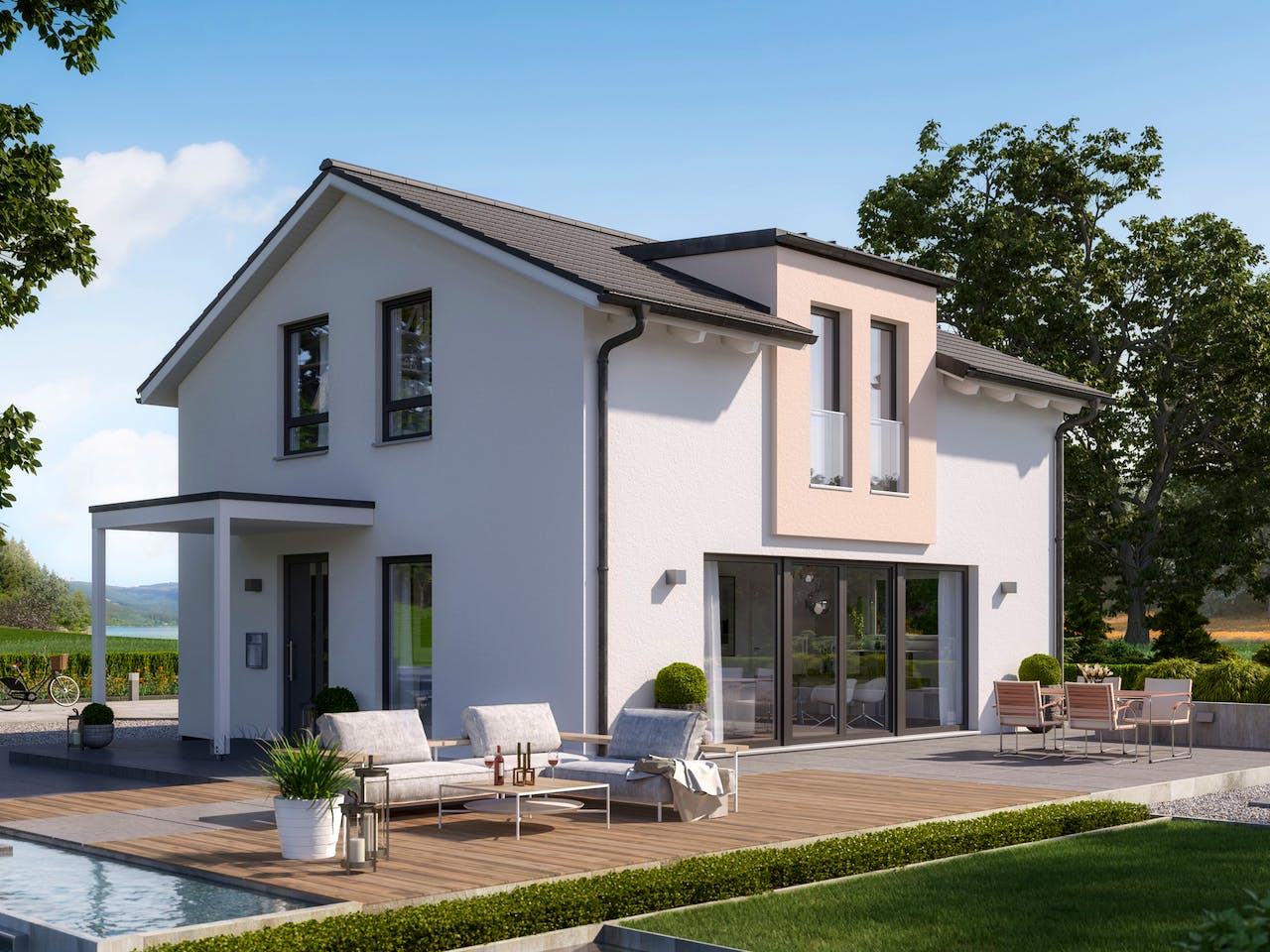 Das EDITION 125 ist ein komfortables Eigenheim, das auch durch alltagspraktische Details wie einen eigenen Garderobenbereich oder eine Speisekammer direkt im Anschluss an die Küche zu überzeugen weiß. Vom Hauseingang, der wahlweise auf der Giebel- oder Traufseite liegt, führt die Diele in einen großzügig bemessenen, offenen Koch-Ess-Wohnbereich – wie geschaffen für eine vierköpfige Familie. Morgens locken hier der Frühstückstresen für ein kleines und der Esstisch für ein ausgiebiges Frühstück. Das Obergeschoss bietet zudem mit einem Elternschlafzimmer mit Ankleide, zwei Kinderzimmern und einem tollen Familienbad viel Platz und Rückzugsmöglichkeiten für alle. Im EDITION 125 spiegeln sich die Erfahrung von mehr als 110 Jahren und die gesamte Hausbau-Kompetenz von Bien-Zenker wider. Es lässt sich – wie alle Bien-Zenker Häuser – flexibel an Ihre individuellen Wünsche und Bedürfnisse anpassen und ist damit der ideale Mittelpunkt für Ihren neuen Lebensraum.