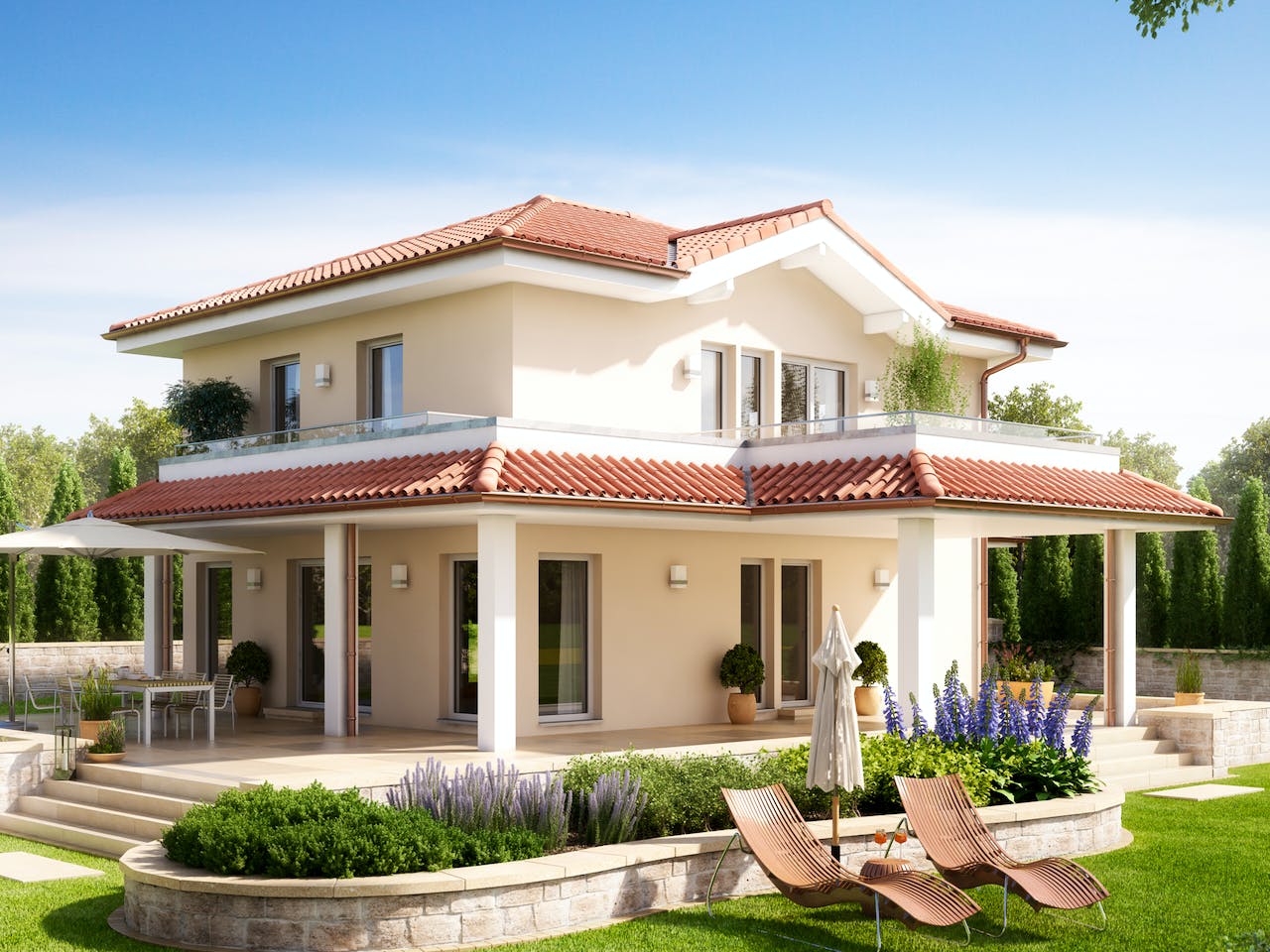 Traumhaftes Einfamilienhaus mit Walmdach und mediterranem Terrassenbalkon