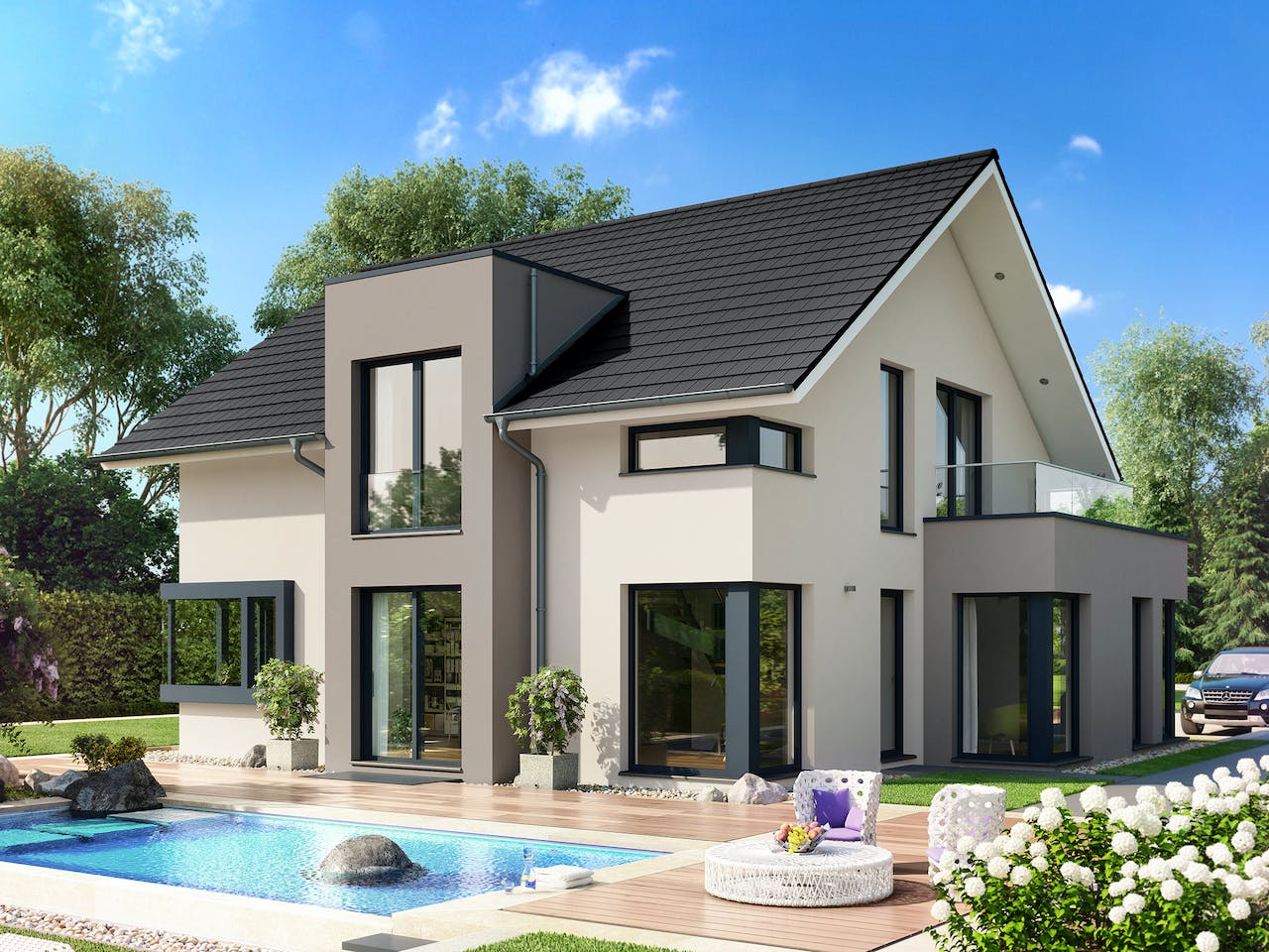 Der Preis bezieht sich auf die Ausbaustufe ZAF als Effizienzhaus 55 inkl. Bodenplatte gemäß aktuell gültiger Bau- und Leistungsbeschreibung. Grundrisse und Abbildungen können Extras zeigen. Flächenangaben nach DIN 277.