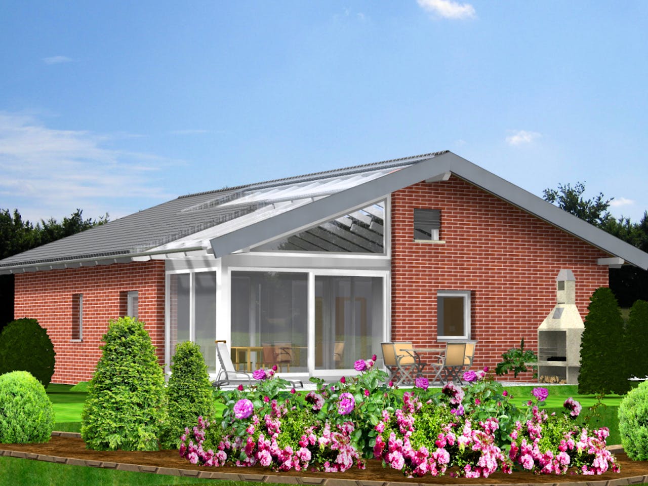 Bei diesem Haus handelt es sich um eins von vielen Planungsbeispielen. Grundsätzlich wird jedes Haus individuell für Sie geplant. Alle Angaben gemäß unserer aktuellen Bau- und Leistungsbeschreibung ob Oberkante Bodenplatte / Kellerdecke inkl. 19% Mehrwertsteuer. Abbildungen können Sonderausstattungen enthalten die gegen Mehrpreis verfügbar sind.