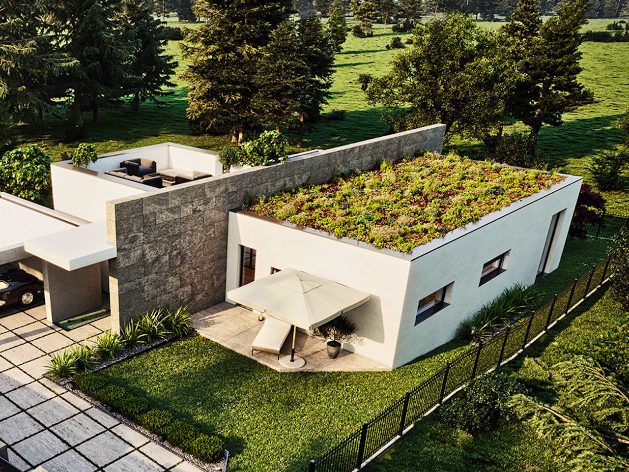 Der Haustyp Bungalow erlebt gerade ein Revival. Mitte des 20. Jahrhunderts ist diese Bauform aus Amerika übergeschwappt. Bungalows waren wegen der günstigen Baukosten beliebt, aber auch als hochwertige Architektur namhafter Gestalter und als moderner Lifestyle. Architekten wie Ludwig Mies van der Rohe und Richard Neutra haben sich mit Bungalows verewigt. Haus Konstanz wurde für ein älteres Ehepaar entworfen. Die Kinder sind außer Haus, die beruflichen Verpflichtungen klingen langsam aus und die Hobbys und der Wunsch nach Naturnähe haben Priorität. Die ebenerdige Charakteristik der Bungalows steht für Barrierefreiheit und Übersichtlichkeit. Ein Saugroboter hat hier freie Fahrt.