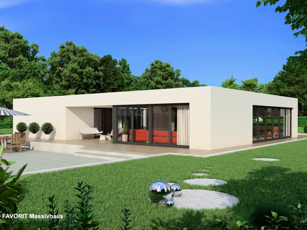 Der Innenhof des Massivhauses Chalet 153 ist das herausragende Element bei diesem Entwurf. Die FAVORIT Architekten entwarfen ein Haus, bei dem die gesamten Wohn- und Funktionsbereiche um dieses Atrium angeordnet sind und so den direkten Zugang zu allen Bereichen aus dem Innenhof ermöglichen. Im Sommer entsteht eine geschützte Rückzugsfläche, in der Ihnen auch Schatten gespendet wird. Herbsttage können Sie hier länger draußen genießen, da die Wärme nicht so schnell verloren geht. Wohnbereich und Schlafbereich sind voneinander getrennt und durch den hellen Flur zu erreichen. Alles in allem kein Haus wie jedes andere für individuelle Bewohner.
