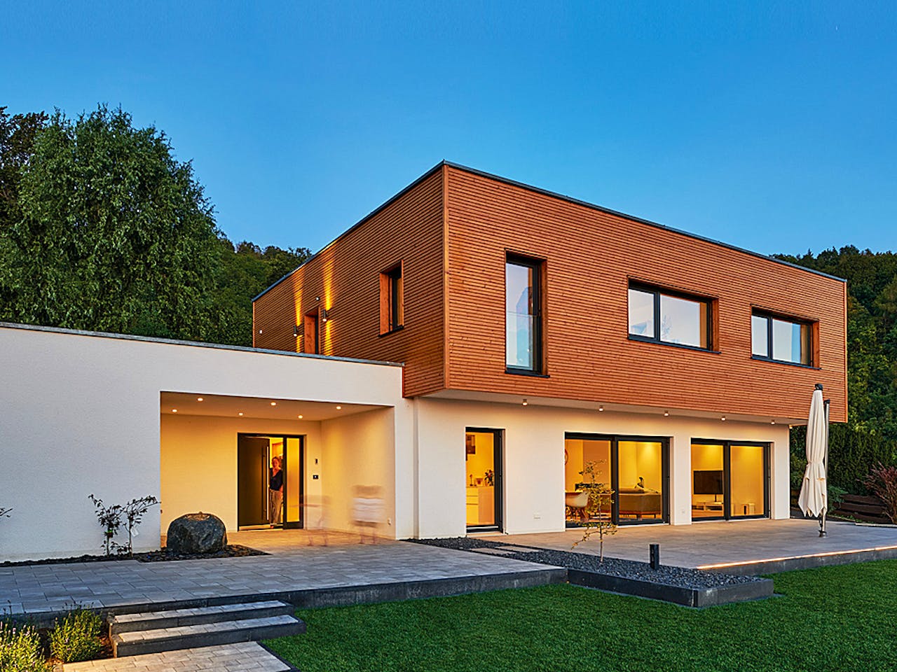 Alle WEISS-Häuser sind individuell geplante Architektenhäuser und werden nach den Wünschen unserer Kunden geplant und gebaut. Das abgebildete Haus kann auf Ihre Bedürfnisse und Ihren Platzbedarf angepasst werden."