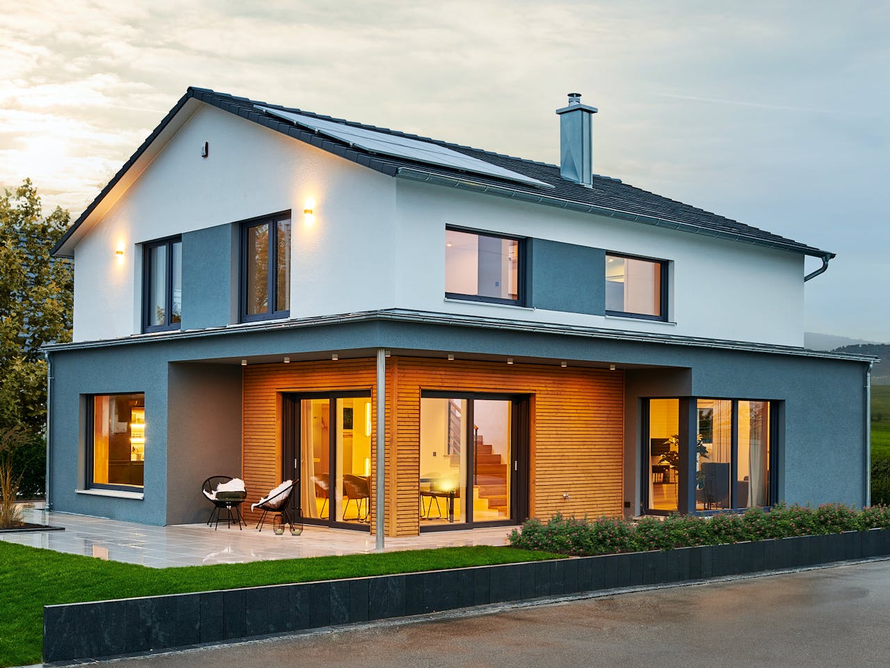 Dank WEISS Home Solution, der smarten Haussteuerung von WEISS, lässt sich die Haustechnik einfach und bequem von jedem Ort im Haus steuern. Eine hohe Energieeffizienz und die Photovoltaikanlage machen das Musterhaus RELAX zum Plusenergiehaus und zudem förderfähig als Effizienzhaus nach KfW 40 Plus – so können Sie auch mit Blick auf steigende Energiekosten entspannt bleiben.