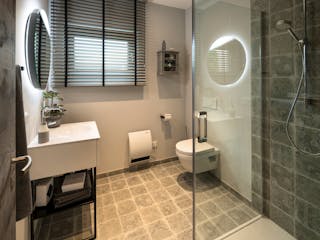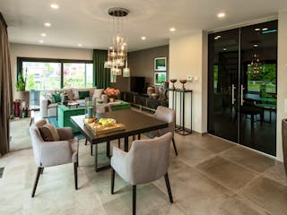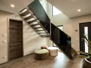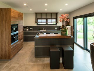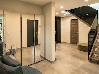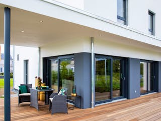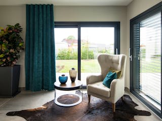Natürlich hat FingerHaus das ALTERO-Musterhaus in Gießen in einem der derzeit höchsten Energiestandards errichtet: Als KfW-Effizienzhaus 40 Plus verfügt es über eine Luft/Wasser-Wärmepumpe, Fußbodenheizung, eine Lüftungsanlage mit Wärmerückgewinnung und Thermostatanschluss und eine Photovoltaikanlage mit Batteriespeicher. Auch die technischen Extras können sich sehen lassen: unter anderem eine Smart-Home-Lösung mit elektrischem Funk-Rollladenantrieb, die HomeWay Multimediaverkabelung sowie die Türkommunikationsanlage.