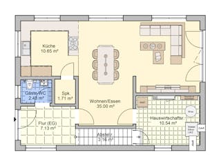 Passen Sie den Grundriss an Ihre persönlichen Bedürfnisse an und besprechen Sie Ihren individuellen Plan mit einem Bauberater des Anbieters.