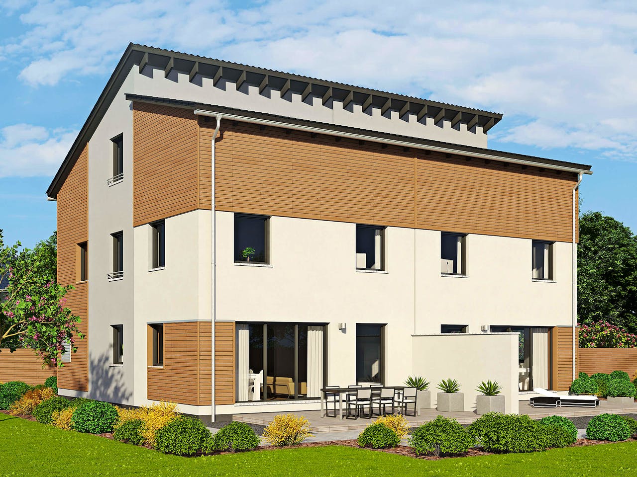 In dem exklusiven Duett 175 dreht sich alles um die Zahl 3: Platz auf drei Ebenen für eine Familie mit bis zu drei Kindern. Ein Trio unschlagbarer Vorteile: Individualität, Exklusivität und Modernität. Bereits das Entree des Hauses lässt die Freiräume erkennen, die sich hier eröffnen. Das klar strukturierte Erdgeschoss bringt den großzügig angelegten Wohn-, Ess und separaten Küchenbereich in Einklang. Dusche/WC, der Abstellraum und der Hauswirtschaftsraum runden das hochwertig ausgestattete Erdgeschoss ab. Die Wohnqualität setzt sich im Ober- und Dachgeschoss nahtlos fort. An die Galerie im Obergeschoss grenzen drei mögliche Kinderzimmer (alternativ Raum für Homeoffice) - ebenso wie das 12 m² große Bad. Der Abstellraum bietet zusätzlichen Stauraum. Im Dachgeschoss - die exklusive Penthouse Etage - präsentiert sich ein optimales Refugium für die Eltern: ein komfortables Schlafzimmer mit geräumiger angrenzender Ankleide. Das gegenüberliegende exklusive Bad sorgt für Wellnessfeeling.