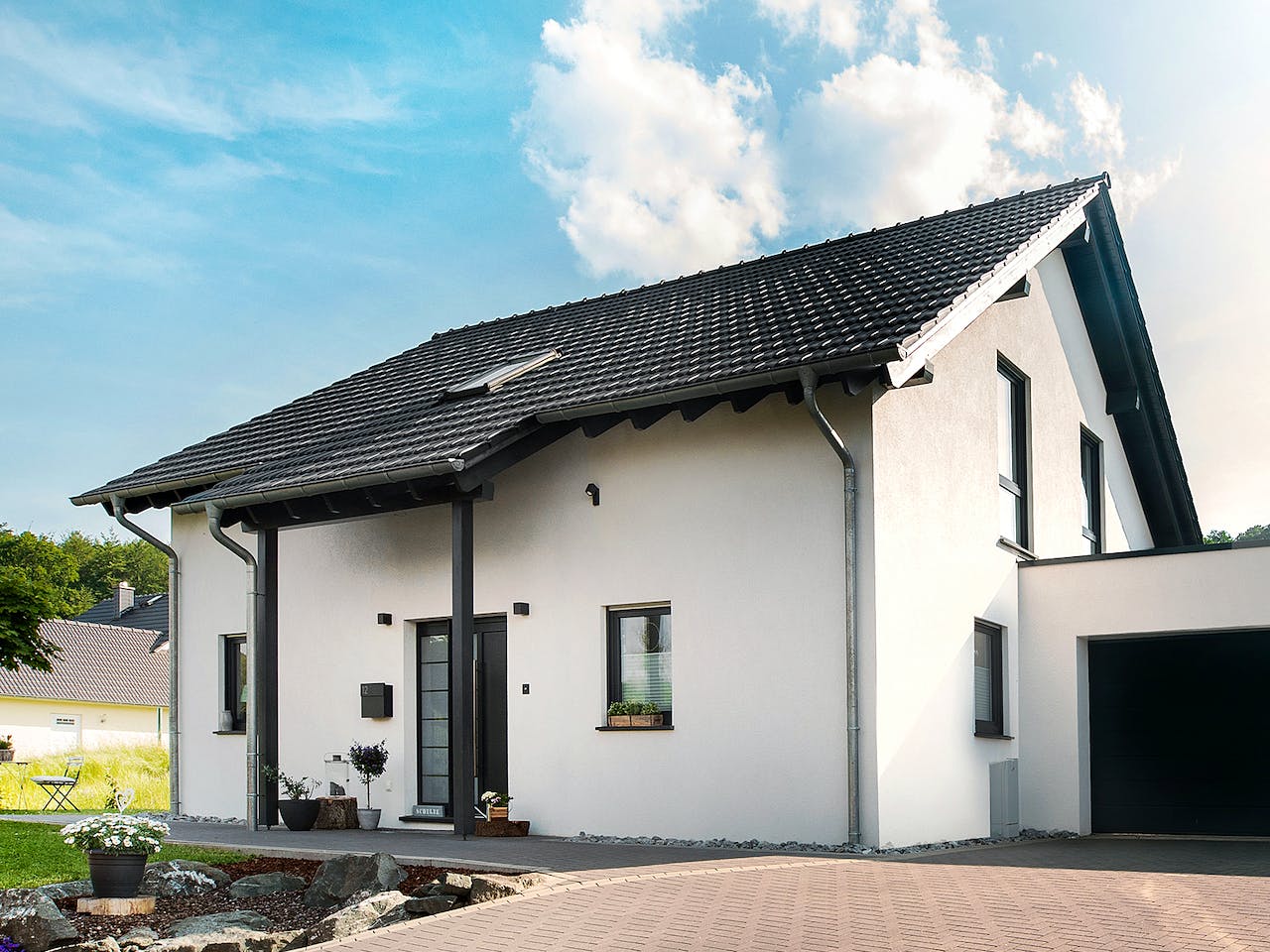„Amika“ ist weit mehr als ein puristisches Satteldach-Objekt mit Erker. Das 164 m2 große Traumhaus ist ein wahres Energiesparwunder durch Tageslichtquellen. Dafür sorgen die bis zum Boden reichenden Fensterfronten, die auf effiziente Heiztechnik und eine thermische Gebäudehülle treffen. Diese Hülle umschließt die weitläufigen Wohnräume im Erd- und Dachgeschoss. Sie ist diffusionsoffen und besitzt keine Styropordämmung, sondern ein Holzweichfaser-Wärmeverbundsystem. In Kombination mit einer Luft-Wasser-Wärmepumpe besticht das Haus „Amika“ mit Ökonomie und Ökologie in großem Umfang. Eine warme Atmosphäre spüren die Hausbewohner auch in den offen gestalteten Räumen des Hauses. Das Herzstück bildet dabei eine große Küche, die als Treffpunkt für gemeinsame Stunden fungiert. Kurzum: Auf allen Ebenen Wärme und Offenheit in der schönsten Form.