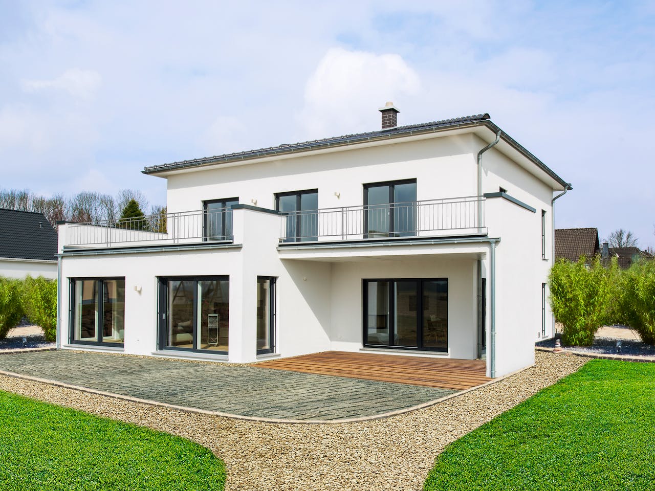Signifikat an unserer Stadtvilla Matene sind die großen Fensterfronten auf der Terrassenseite. Das natürliche Licht lässt die Räume von innen umso größer wirken und sorgt für den modernen Look des Hauses.