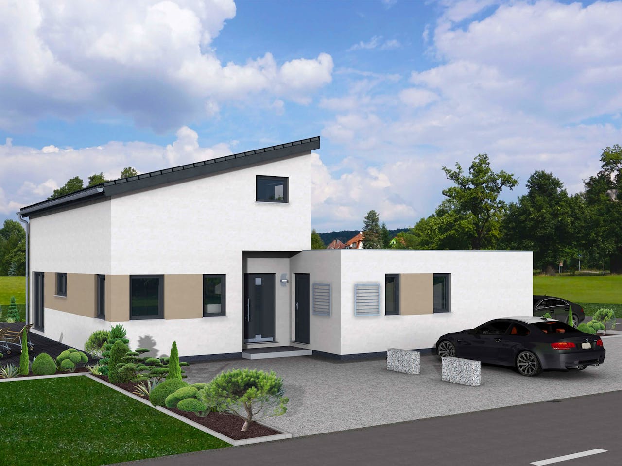 Die gezeigten Abbildungen zeigen zum Teil Sonderleistungen gegen Mehrpreis. Preis der entsprechenden Ausbaustufe inkl. Fingerhut-Bodenplatte und 19 % MwSt. gemäß der Fingerhut-Bau- und Leistungsbeschreibung 1012, Preisliste P05/25.