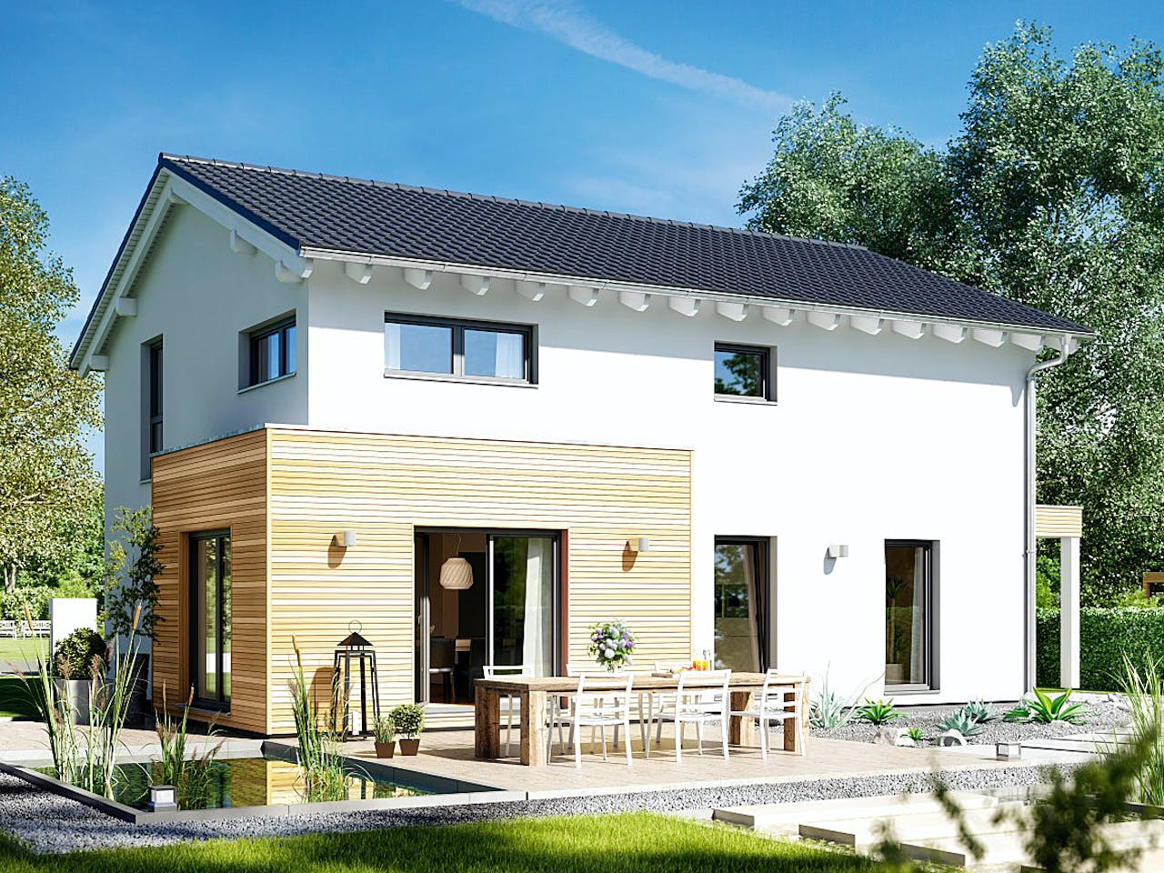 Die attraktive Architektur des Hauses zeichnet sich durch den hohen Kniestock und das zeitlose Satteldach aus. Die optionale Fassadengestaltung setzt den schönen Baukörper noch einmal ganz besonders in Szene. Das stilvolle Ambiente des Hauses wird durch den Flachdach-Erker noch einmal besonders hervorgehoben.