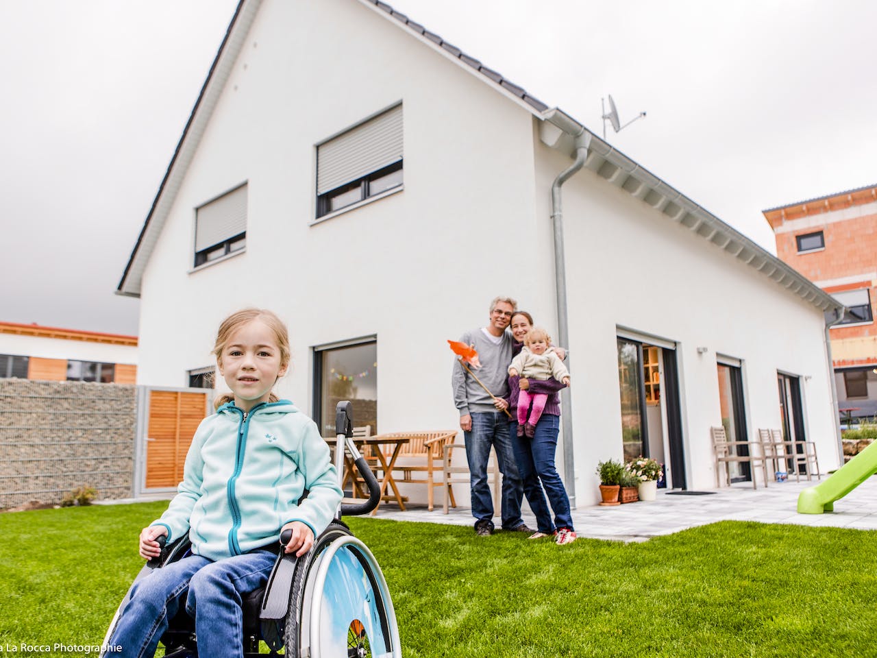 Die Begriffe barrierefreies Haus sowie alters- und behindertengerecht Bauen bezeichnen ähnliche Anforderungen an den Wohnungsbau, die immer mehr Bedeutung erlangen. Dabei verdrängt das Attribut altersgerecht mit seiner etwas weiter gefassten Bedeutung zunehmen die Bezeichnungen alten- und seniorengerecht. Es bezeichnet eine Bauweise, die versucht, Menschen jeden Alters gerecht zu werden, und nicht nur eine speziell auf die Bedürfnisse von Senioren ausgelegte Form. Diese Unterscheidung ist wichtig, weil sich die Anforderungen bei verschiedenen Altersgruppen zum Teil widersprechen. Wenn Sie beispielsweise ein Waschbecken in kindgerechter Höhe anbringen, erfordert die Benutzung durch einen Erwachsenen meist eine rückenschädliche, nach vorn gebeugte Haltung. Genauso barrierefrei ist dieses Fertighaus von FischerHaus auf individuellen Kundenwunsch gebaut worden.