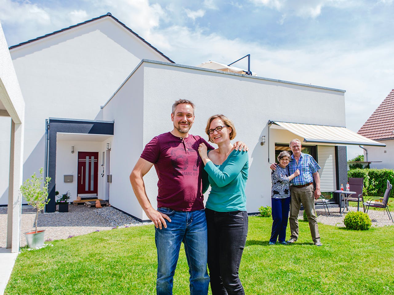 Ein Beispiel für gelungenes, gelebtes Mehrgenerationen-Wohnen ist das FischerHaus der Familie Bozinovic-Nowak. Das Haus wurde als Zwei-Familienhaus gebaut, mit einer Einliegerwohnung im Erdgeschoss und einem Haupthaus für die Familie. Durch die Aufteilung in zwei Wohneinheiten konnten die Bauherren von einer doppelten Förderung der KfW-Bank profitieren, denn die staatliche Förderung in Form von günstigen Krediten und Tilgungszuschüssen gibt es für jede Wohnung separat. Da FischerHaus standardmäßig besonders sparsame Effizienzhäuser 40 baut, ist diese finanzielle Unterstützung jedem Bauherrn sicher.