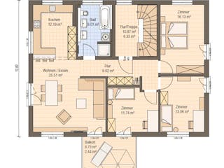 Passen Sie den Grundriss an Ihre persönlichen Bedürfnisse an und besprechen Sie Ihren individuellen Plan mit einem Bauberater des Anbieters.