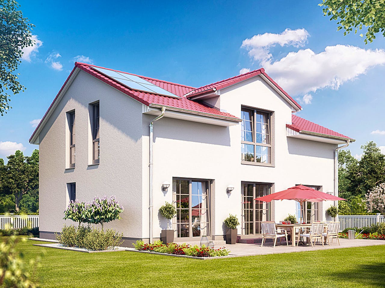 Tageslichtjunkies aufgepasst! Eine helle Zukunft im hellen Zuhause in Sicht. Große Fensterflächen zu allen Seiten fluten die Räume des Calvus 620 mit Licht. Eine gemütliche Dachgaube im vollwertigen 2. Geschoss macht den Charme dieses Hauses aus. Drücken Sie diesem Modell Ihren ganz persönlichen Stempel auf: vom Sockel über die Fassade bis hin zum Dachziegel individualisieren Sie bis ins kleinste Detail. Wir sind Partner vieler hochwertiger Hausbau-Marken. Vor allem aber sind wir Ihr Partner in Sachen Planung und Umsetzung vom eigenen Traumhaus