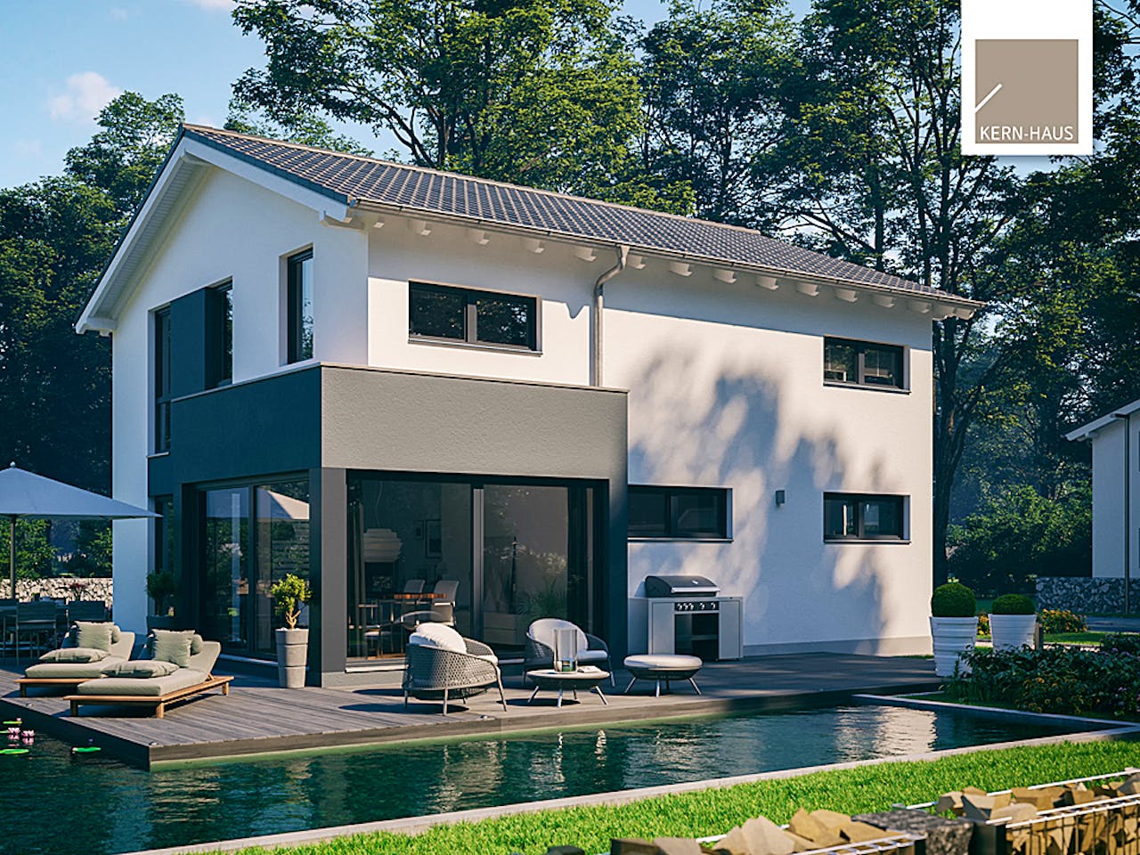 Kern-Haus steht für 40 Jahre Expertise für das massive, energieeffiziente Bauen und realisiert Architektenhäuser in Ziegel, Bims, Porenbeton oder Stahlbeton (DuoTherm). Darüber hinaus setzt der Massivhaushersteller auf Energieeffizienz bei all seinen Häusern, denn bereits im Standard ist jedes Haus in der höchsten Energieeffizienzklasse A+.