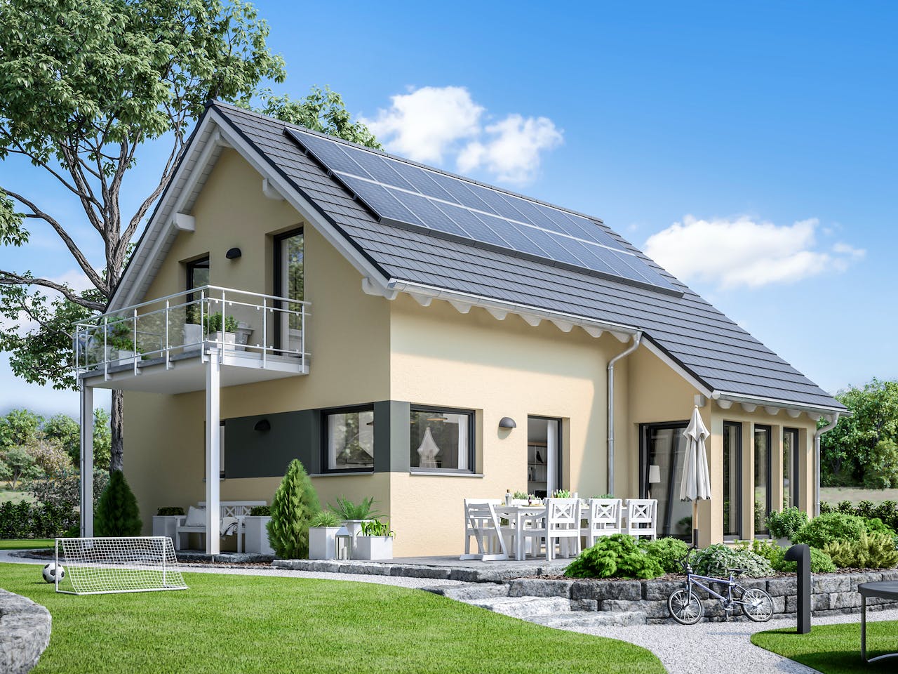 SUNSHINE 125 macht in verschiedenen Architekturvarianten vom pfiffigen Satteldachhaus bis zur zweigeschossigen Stadtvilla eine prima Figur. Im offenen Koch-Ess-Wohnbereich wird gelebt und gelacht – und ganz sicher fühlen sich hier auch deine Gäste rundherum wohl. Viel Freiraum für die persönliche Lebensart bietet in dem tollen Familienhaus auch das obere Geschoss. Die Eltern gönnen sich ein Schlafzimmer mit separater Ankleide und Wellness-Bad. Oder zwei Kinder genießen hier ihr eigenes Reich zum Spielen, Lernen und Schlafen. Bestimmt wird es dir gefallen, mit vielfältigen Architektur-Accessoires dein ganz persönliches Eigenheim zu gestalten.