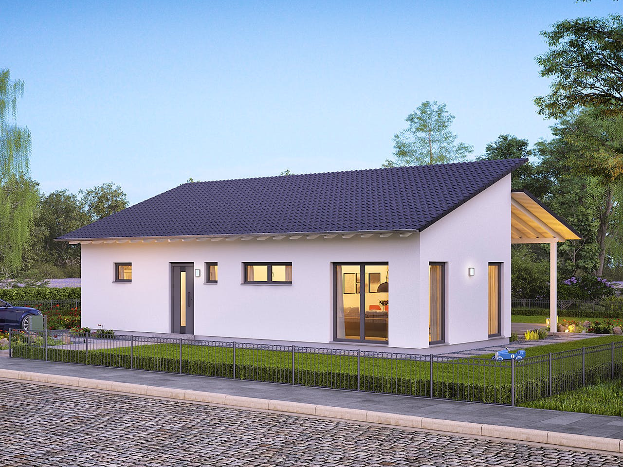 Wohlfühlwohnen mit überdachtem Freisitz im ComfortStyle 10.02 P. Der ComfortStyle 10.02 P bietet auf 102 m² viele Möglichkeiten für die Verwirklichung der eigenen Vorstellungen und Träume. Das Herz dieses Hauses bietet der 43 m² große Wohn- und Essbereich mit angrenzender offener Küche. Hier fühlt sich jede Generation Zuhause.