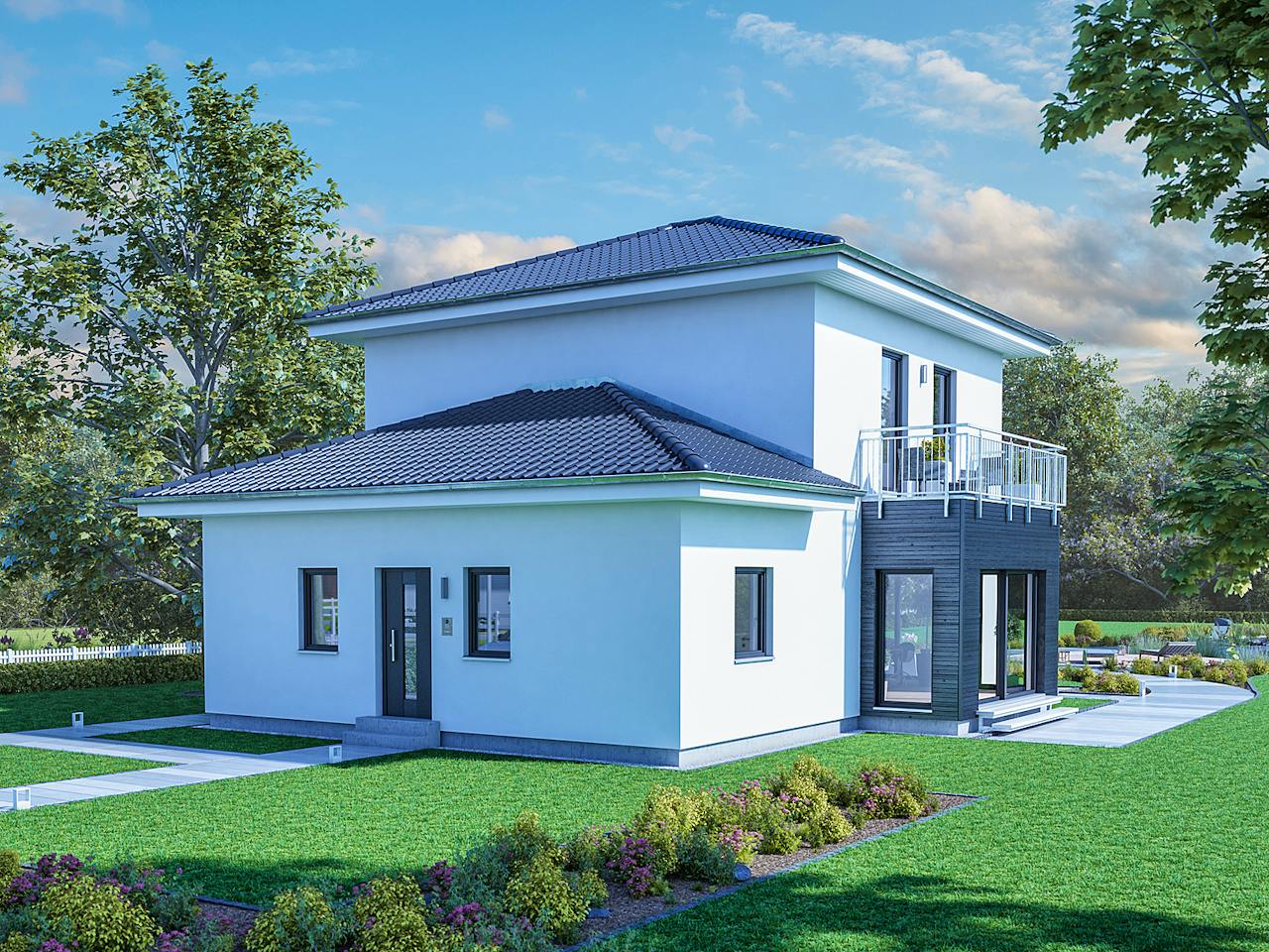 Wie wäre es mit einem Hauch von Süden im Eigenheim? Das zurückspringende Staffelgeschoss und die voneinander abgesetzten Walmdächer verleihen dieser Stadtvilla ein gewisses, mediterranes Flair. Im Inneren bietet die ungewöhnliche 1 ½-geschossige Bauweise mit ca. 139 m² Nettogrundfläche und höheren Wänden im Obergeschoss das gewisse Etwas für eine äußerst flexible Gestaltung.