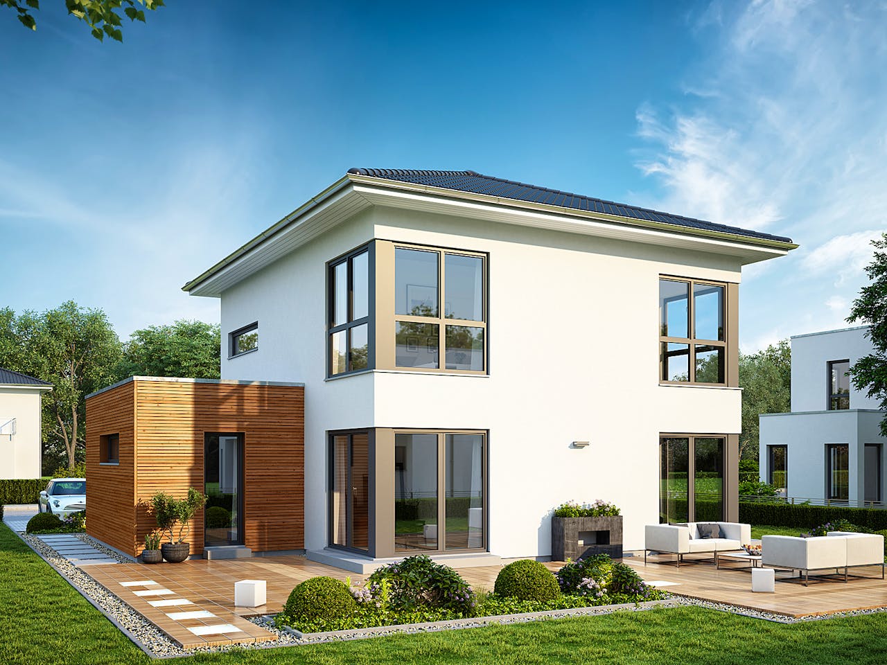 Angaben zum Preis: inkl. Architektenleistung, 3-fach-Fensterverglasung, massa-Klima-Schutz-Wand, Freiraum-Upgrade, Massa 4-fach-Versicherungsschutz