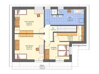 Passen Sie den Grundriss an Ihre persönlichen Bedürfnisse an und besprechen Sie Ihren individuellen Plan mit einem Bauberater des Anbieters.