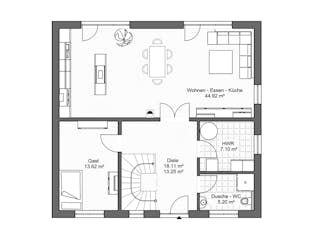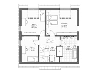 Passen Sie den Grundriss an Ihre persönlichen Bedürfnisse an und besprechen Sie Ihren individuellen Plan mit einem Bauberater des Anbieters.