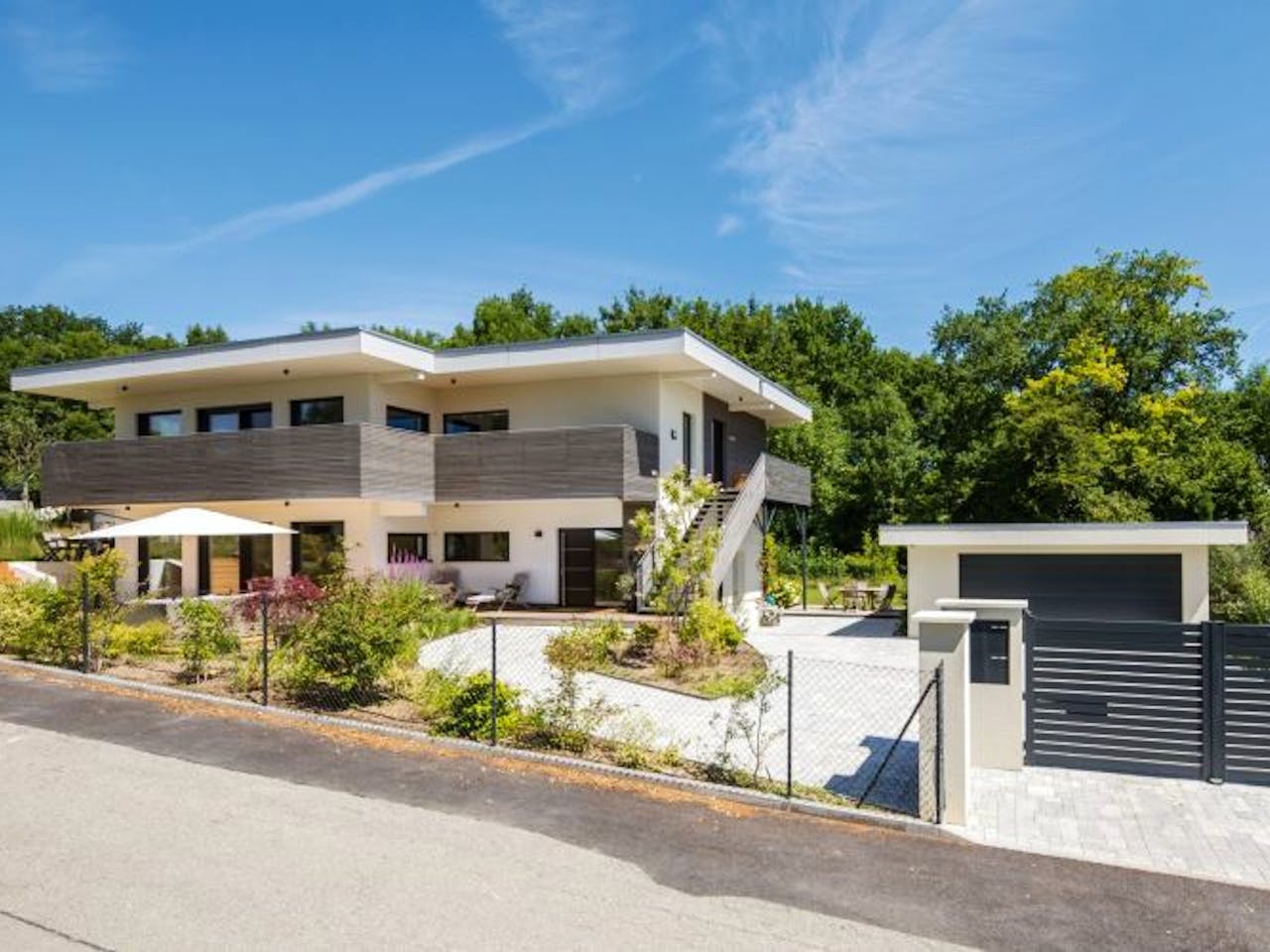 Dass solch ein Hauskonzept überhaupt entstehen konnte, verdankt die Bauherrin nicht zuletzt dem Zufall, der ihr das Hanggrundstück direkt am Waldrand von Founex verschaffte. Denn eigentlich herrscht auf dem Markt für Bauland in dieser Gegend dauerhaft Ebbe. Die Bauherrin hatte daher ihren Wunschtraum, ihr früheres Zuhause an einer lauten Straße gegen einen Neubau in ruhiger Umgebung zu tauschen, schon fast aufgegeben, als sie im Gespräch mit einer Zufallsbekanntschaft erfuhr, dass deren Nachbarn in der Wunschgegend ein Grundstück verkauft hatten. Bei einem Besuch am selben Abend stellte sich heraus, dass der Notartermin mit dem Käufer just an diesem Tag geplatzt war.