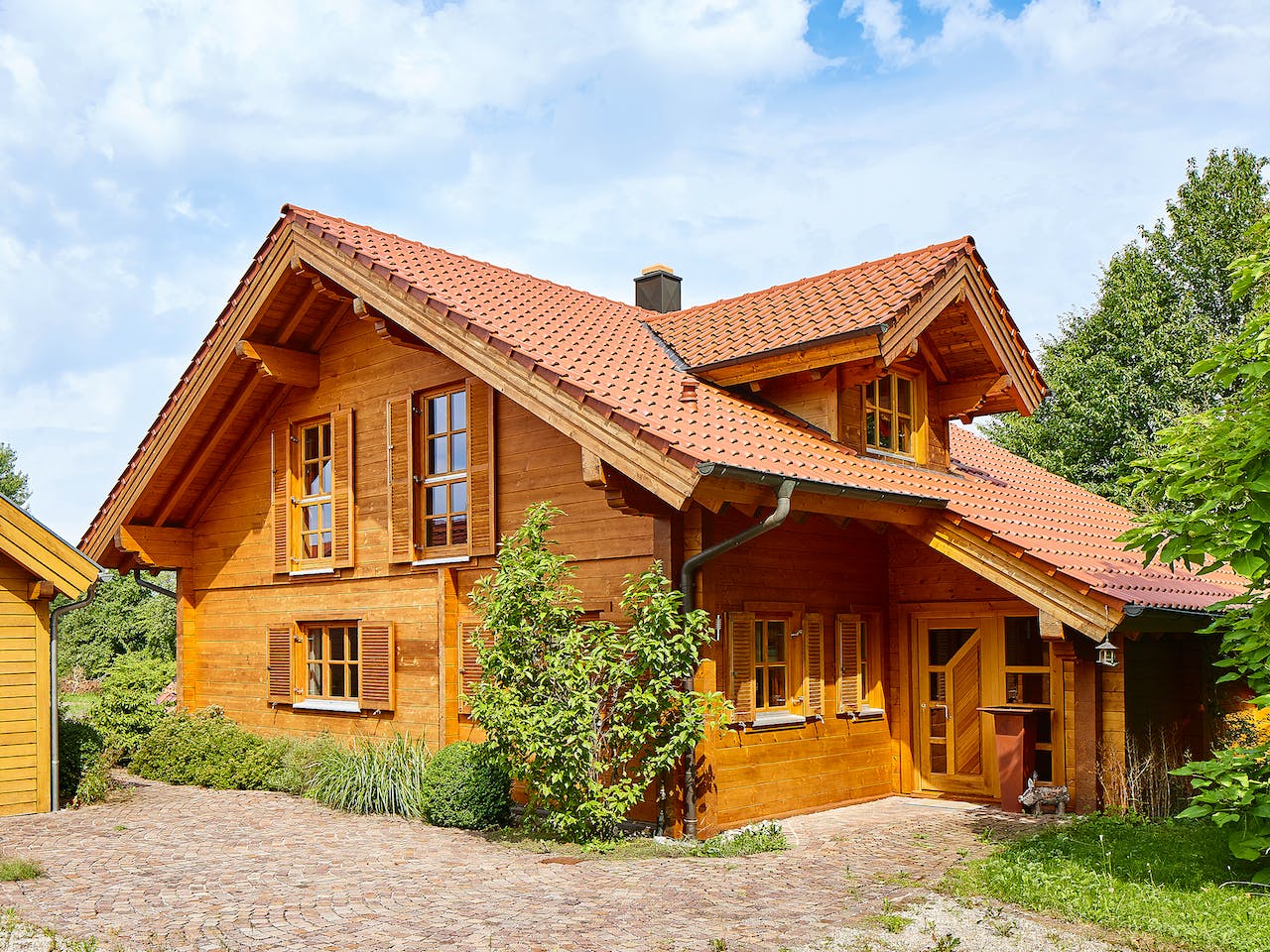 2000 erbaut, war dies das erste Blockhaus mit der 20 cm Massivbohle. Grundsolide, wohngesund und in der Aufteilung wohl durchdacht präsentiert sich das Musterhaus am Firmenstandort in Großerlach bei Stuttgart. Mit seiner honigfarbenen Fassade, Sprossenfenstern und Klappläden zeigt das Haus genau den Charme, der die Herzen von Blockhausfreunden höherschlagen lässt.