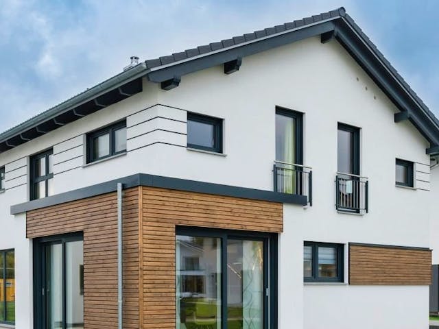 Klare Formen und ein traditionelles Satteldach, gepaart mit kubischen Architekturelementen betonen den frischen Charakter des Musterhauses Modena.