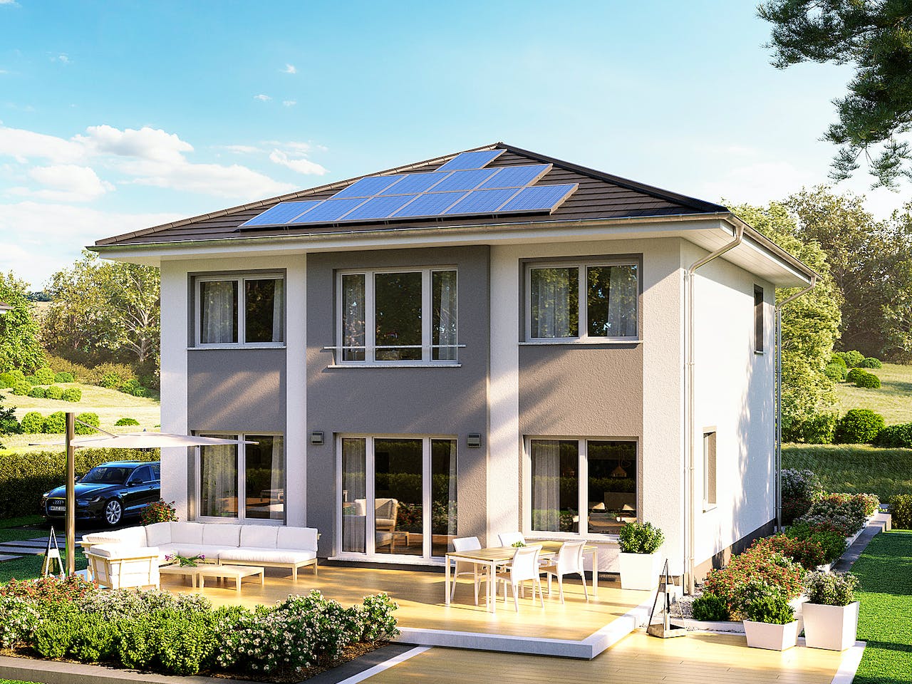Der kubische Baukörper mit Walm- oder Satteldach, Erkern und attraktiven Farbkombinationen ergibt ein gelungenes Ganzes. Mit unserer Stadtvilla Modena verbinden wir großzügigen Planungsaufbau mit zeitloser Architektur.