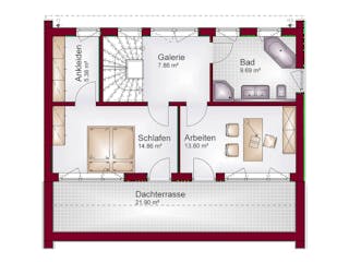 Passen Sie den Grundriss an Ihre persönlichen Bedürfnisse an und besprechen Sie Ihren individuellen Plan mit einem Bauberater des Anbieters.