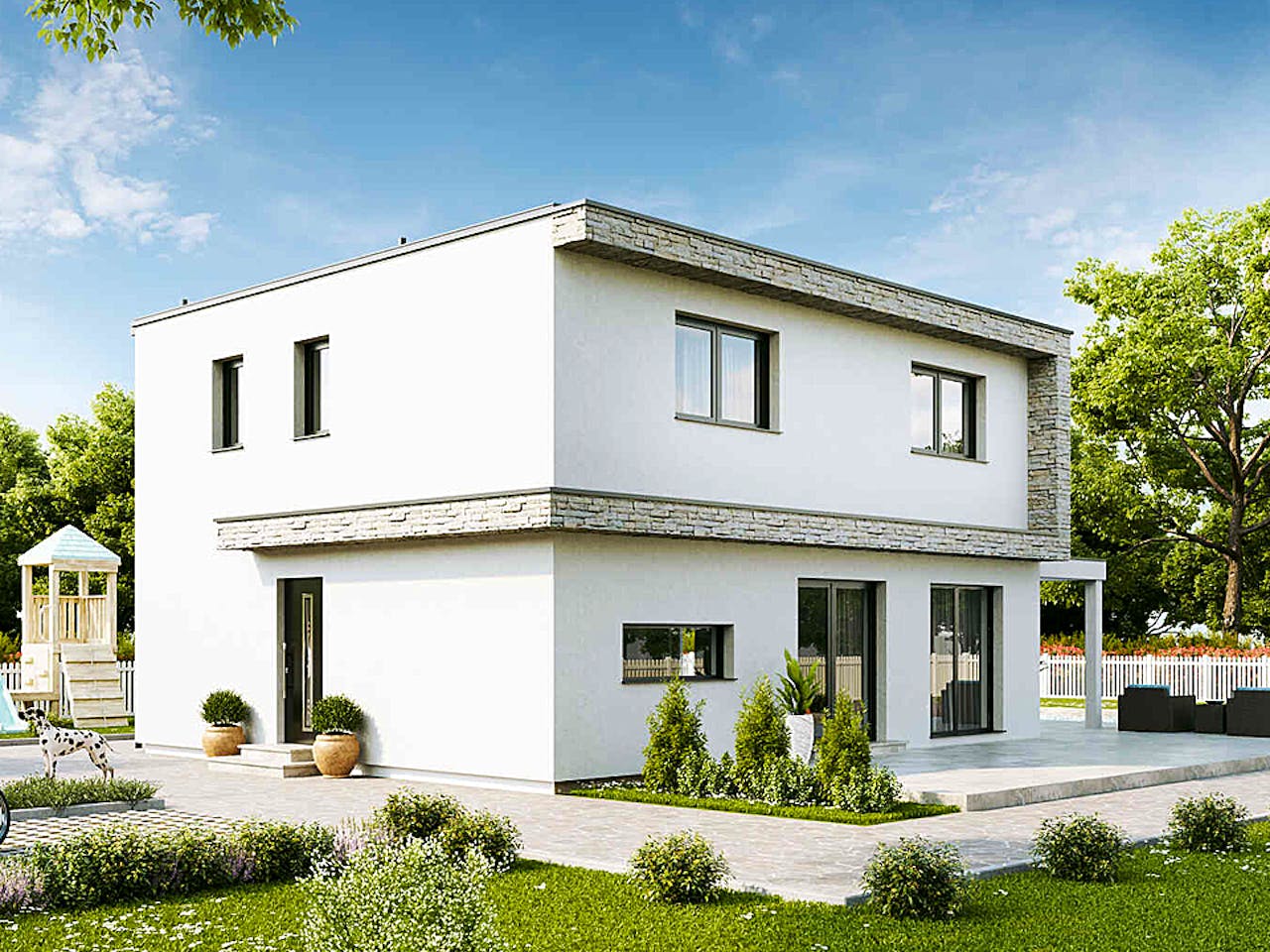 Family Edition ist ein spezielles Haus mit vielen Gestaltungsmöglichkeiten. Das ansprechende äußere Erscheinungsbild wird im Inneren durch das offene Raumkonzept rund um die zentrale Stiege unterstrichen. Das Family Edition bietet auf zwei Hausseiten doppelflügelige Terrassentüren, die Ihre Terrasse und Ihren Garten optimal in das Gesamtkonzept einbeziehen. Ein Elternbereich mit Schrankraum wird durch zwei weitere Kinderzimmer sowie Bad und separates WC ergänzt.