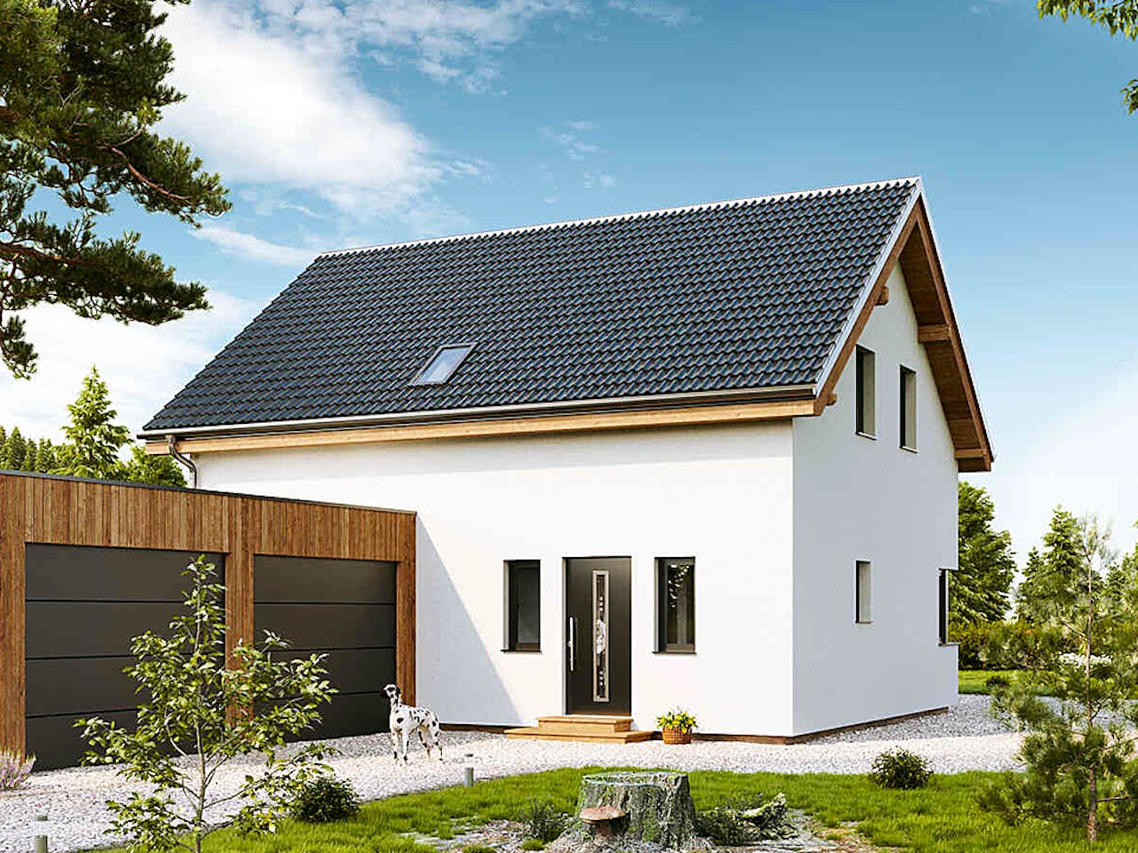 Dieses 3-Giebel-Haus mit Erker und Eckfenster hat eine sehr starke „emotionale“ Formensprache. Lassen Sie sich von den mehr als 128m² und dem offenen Wohnzimmer überzeugen. Die serienmäßige Schiebetüre erweitert Ihr Wohnzimmer auf die Terrasse. Die drei Schlafzimmer und alle Nebenräume runden das Komplett-Paket ab.