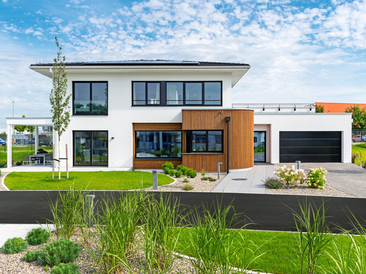 Urbaner Lifestyle für Stadt und Land auf zwei Vollgeschossen. Rund 165 Quadratmeter Wohnfläche gewähren viel Raum zur freien Entfaltung. Aufwändige Details wie der Runderker und das Panoramafenster mit integrierter Sitzbank setzen exklusive Akzente. Das Wellnessbad mit Sauna und großer Fliesendusche ist wie der Rest des Hauses barrierearm – für unbeschwerten Wohlfühlkomfort. Optisch besonders ansprechend: Die naturnahen Farbtöne der Fassade setzen sich im Innenbereich fort.