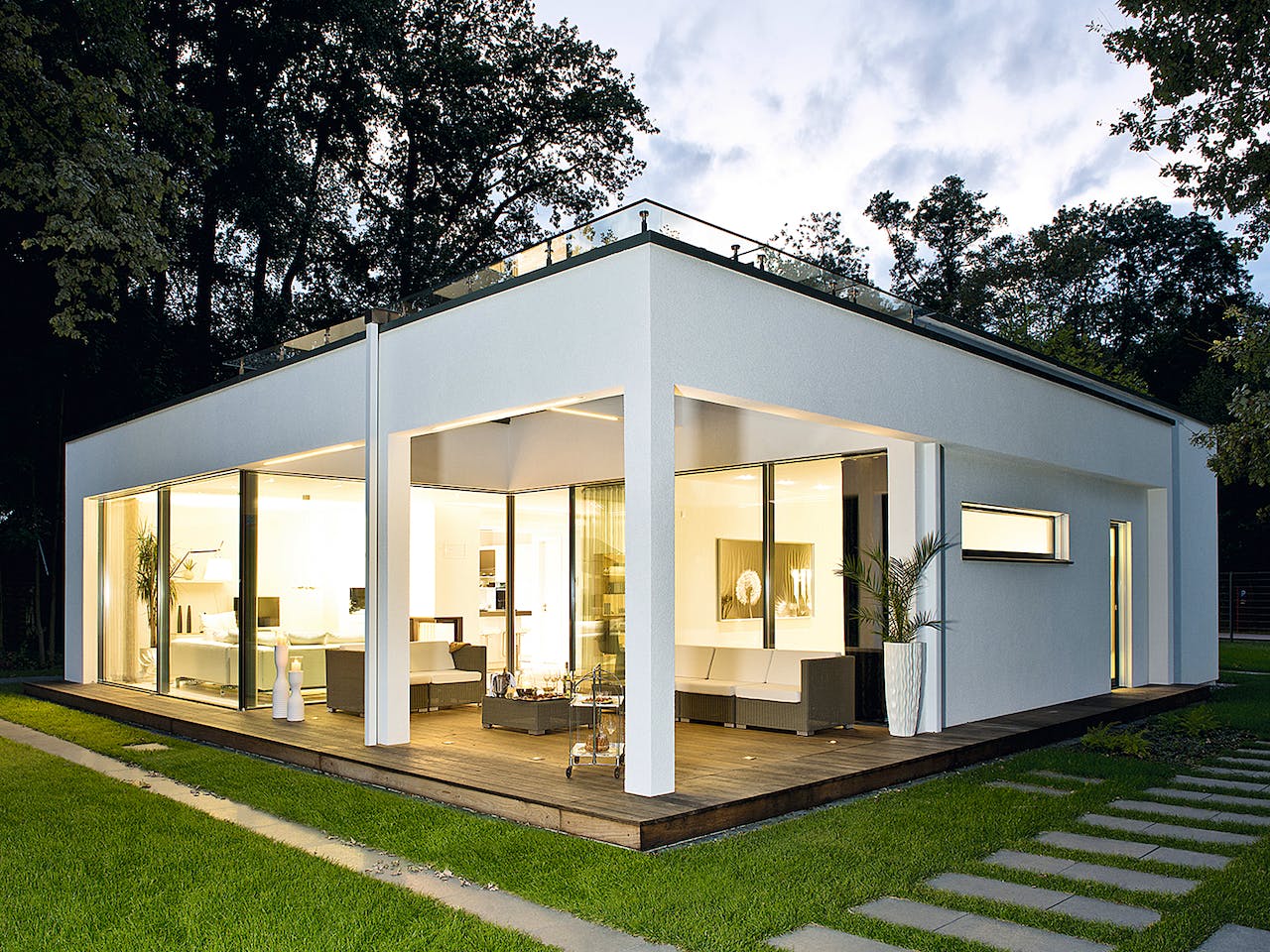 Ausbaustufe Malerfertig, inkl. Bodenplatte, ohne Sonderverglasung und Terrassenüberdachung, Hausabbildung zeigt aufpreispflichtige Extras, Stand 10/2025