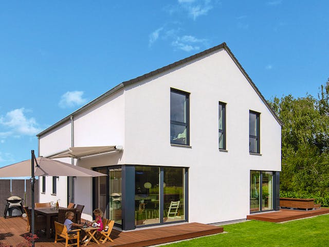Ein Effizienzhaus 55 verbraucht im Vergleich zum Referenzhaus 100 45 % weniger Energie. Sie müssen für den Hausbau mit Mehrkosten von ~ 7,5 % rechnen, die sich aber mittelfristig auszahlen. Diese Effizienzklasse gilt heutzutage als Standard für alle neu gebauten Häuser.
