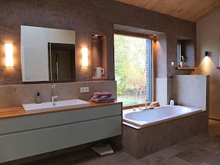 Ein Effizienzhaus 40 Plus verbraucht im Vergleich zum Referenzhaus 100 > 60 % weniger Energie. Sie müssen für den Hausbau mit Mehrkosten von ~ 13,5 % rechnen, die sich aber mittelfristig auszahlen. Es verfügt im Vergleich zum Effizienzhaus 40 über weitere Komponenten, wie beispielsweise eine Lüftungsanlage mit Wärmerückgewinnung, eine Anlage, mit der auf Basis erneuerbarer Energien Strom erzeugt werden kann und ein Batteriespeichersystem, mit dem überschüssige Energie eingespart werden kann.